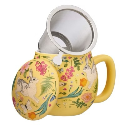 Deze porseleinen mok (350 ml) is ontworpen voor zowel stijl als functionaliteit, inclusief een roestvrijstalen theezeef en bijpassend deksel.