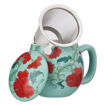 Uitgerust met een roestvrijstalen theezeef en bijpassend deksel, kun je eenvoudig losse thee of kruidenthee zetten. De fluweelzachte afwerking geeft een luxe gevoel bij het drinken, terwijl het pastelachtige kleurenpalet een rustgevende sfeer toevoegt aan je theemoment.